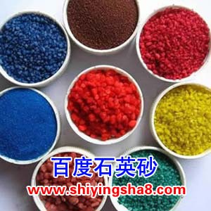 人工上色石英砂:是经过特制石英砂染制而成的,具有不腿色的特点,弥补了天然石英砂的色彩不鲜艳及色彩品种少等缺点,色彩牢固、持久、不褪色。
